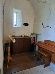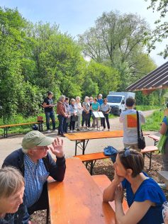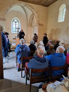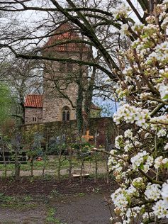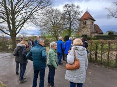Am Karfreitag trafen sich 36 Neugierige und Interessierte zu einer Führung um und im „Peterskirchle“ in Oberstenfeld. Einige waren, obwohl sie schon lange im Bottwartal leben, noch nie an diesem Ort. Markus Pantle hatte viel zu berichten und alle lauschten seinen Ausführungen und Erklärungen. Über Vergangenes, der Entstehung und Zugehörigkeit des Gebäudes, die Bauweise und Baumaterialien. Zeigte uns halb verborgene Tor- und Fensterbögen. Erklärte uns die noch vorhandenen schönen Wandmalereien. Und wie bei großen Kirchen gibt es auch hier, natürlich in Kleinformat Altar, Kanzel, Sakristei und eine Kirchenglocke mit Seil für den Handbetrieb. Und es gab noch wesentlich mehr zu sehen, hören und bestaunen.