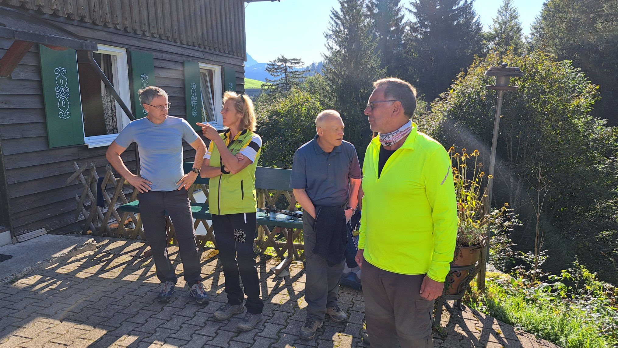große, kleine und mehrfach „Gipfelstürmer“; Talwanderer und Viehscheid Besucher (traditioneller, jahrhundertalter zünftiger Almabtrieb); natürlich auch eine frisch gezapfte Viehscheid Maß; jede Menge geschmückte und mit Schellen behangene Rindviecher; einen Regentag und noch mehr Sonnenschein und tiefblauer Himmel; somit Regenjacken – und T-Shirt Wetter; zünftige Alpen und Essen zur Einkehr; selbstgemachtes Frühstücksbuffet und Abendessen (Sterne reif); ein sehr gutes Küchenteam; gute Tischdecker und ebenso gute Abräumer und Geschirrspüler; fröhliche und laute Hüttenabende; unsere erste „Bingo Meisterschaft“ und eine grandiose Siegerin (Marion); einem großartigen Preis mit Urkunde; eine perfekte Organisation und Vorbereitung durch unsere zwei tollen Hüttenwirte auf Zeit (H.P. und M.A.); etc.