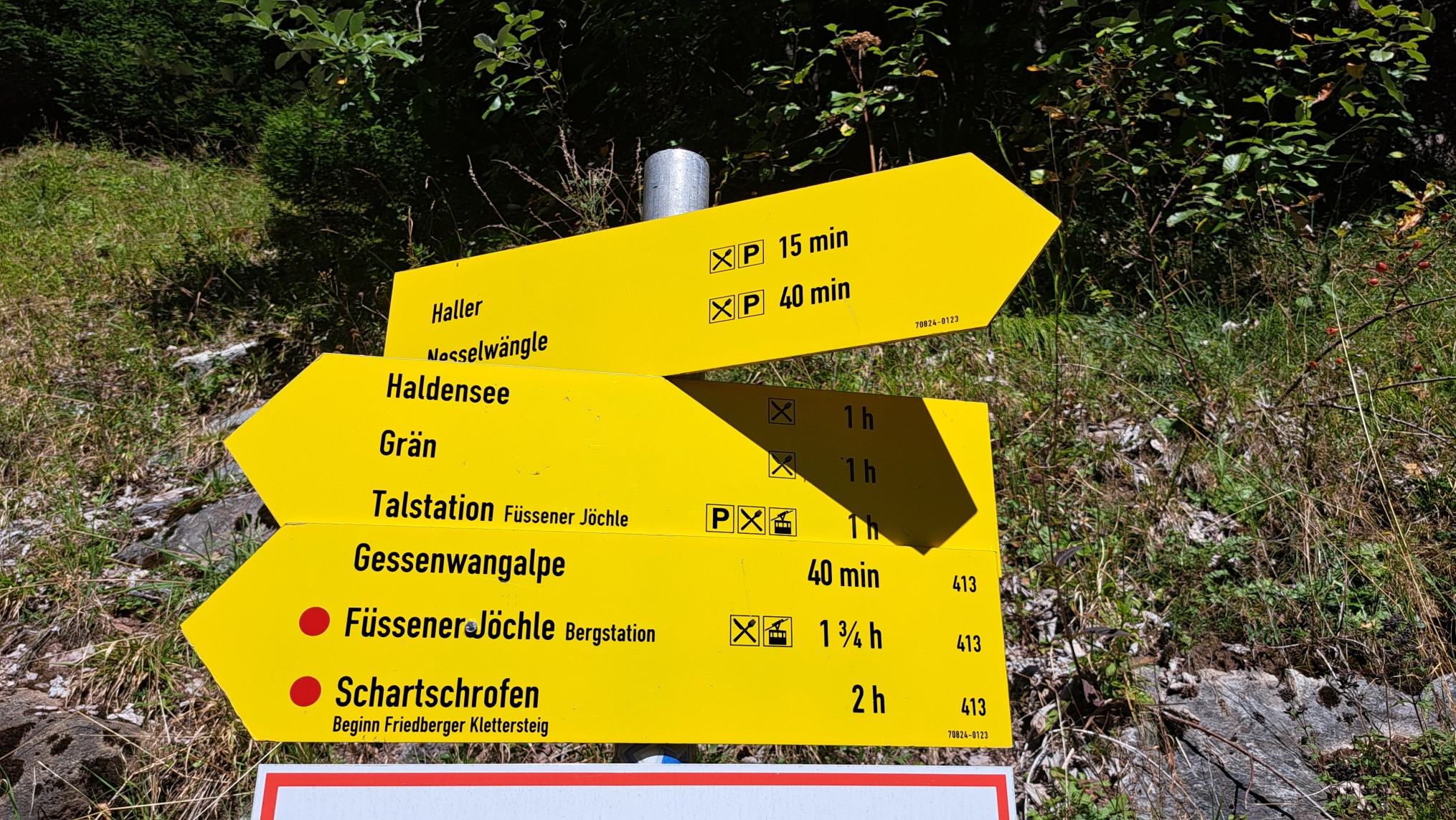 Schon am ersten Tag ging es für die geübten Wanderer/innen über die Buchelalpe zur Hirschalpe und über Oberjoch zurück zur Unterkunft. Ein nicht so einfaches Bergauf und -ab, da die Wege noch durch das lange Regnen im Allgäu sehr feucht, rutschig und nass waren.