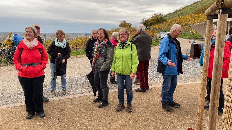 Schließlich erreichten wir an der Westseite des Michaelsberges unser finales Ziel, den neuen Weinausschank „Christophsblick“, den die ortsansässigen Weingüter, die Gemeinde Cleebronn und federführend die örtliche Weingärtnergenossenschaft in diesem Jahr vollenden und einweihen durften. Bei tollen Weinen, Kaffee & Kuchen, Wurst vom Grill und leckeren Flammkuchen reihte sich unsere Wandergruppe in die vielen Besucher ein und genoss den herrlichen Blick in Richtung Neckar- und Bottwartal und Richtung Stuttgart.