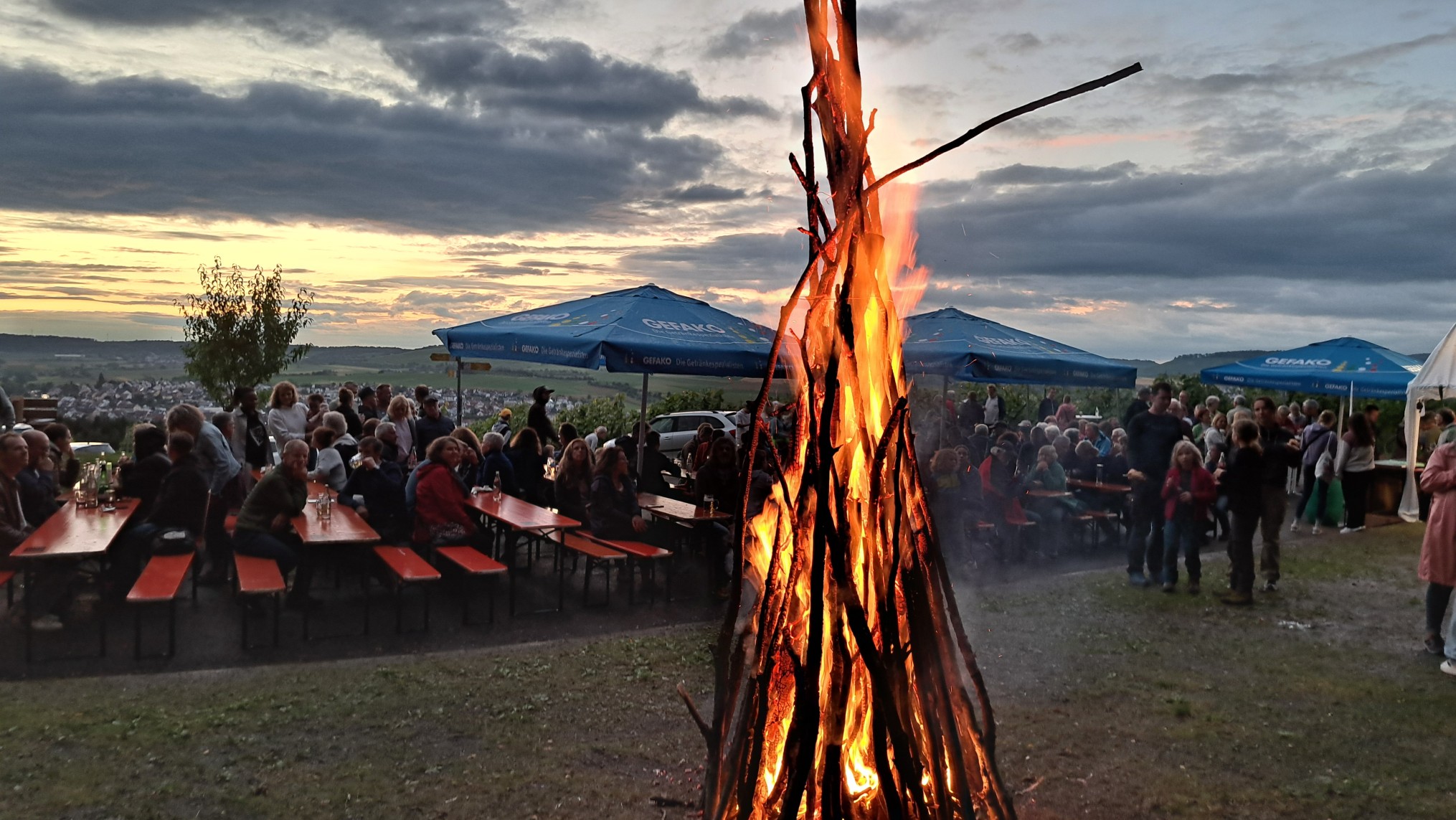 Für das leibliche Wohl wird bestens gesorgt. Bei anbrechender Dunkelheit (ca. 21.30 Uhr) werden die Kinder den vorbereiteten Feuerstoß mit Fackeln entzünden.