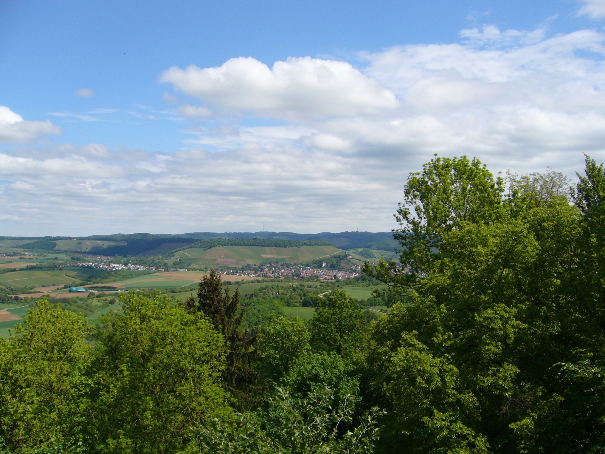 Im Norden wandert der Blick über die Autobahn ins Schotzachtal nach Ilsfeld, der Katzenbuckel, höchster Berg des Odenwaldes, ist gut zu sehen. Im Nordosten taucht das Schloss Stettenfels und der Schweinsberg bei Heilbronn auf.